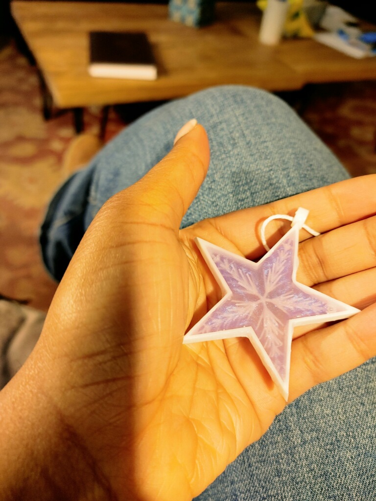 You might notice that she didn’t mention getting my text – it’s because it never went through. I was a bit confused, thinking I may have misunderstood the situation. I did go back to Crossroads that evening, but we must have just missed each other. Earlier that day one of the things I had mentioned doing for fun was 3D-printing Christmas ornaments, so I decided to leave one from my last batch with her case of Redbull. Since she didn’t respond to my text, I figured that I probably wouldn’t hear from her before she left Colorado.